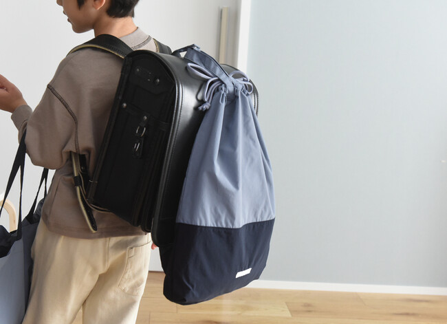 ランドセル周りでもう一つ注目の新作が、「ランドセルの上から背負える ナップサック」。体操着などを入れてランドセルに固定できるサブバッグで、荷物が多い登下校時に活躍します。