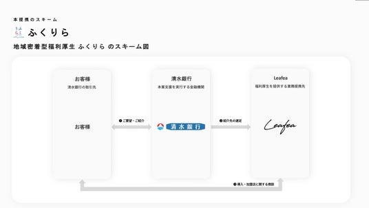 地域密着型福利厚生サービスを提供する株式会社Leafea(本社:東京都中央区、代表取締役:森田 渉、以下リーフィ)は、清水銀行(本店:静岡県静岡市清水区、代表取締役頭取:岩山 靖宏)と提携を開始します。4月1日(水)より清水銀行で地域密着型福利厚生サービス「ふくりら」の取扱いを開始し、地域創生と日々頑張る方の支援を目指します。