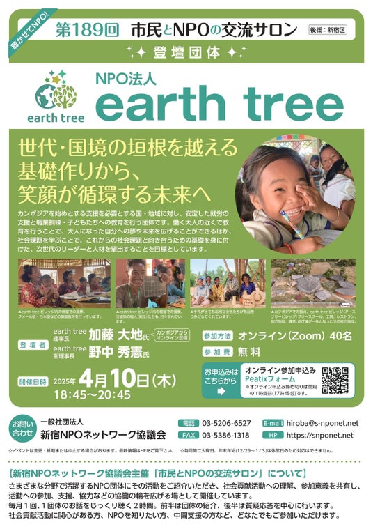 【第189回市民とNPOの交流サロン (登壇団体:NPO法人earth tree)】