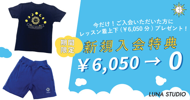 新生活応援キャンペーンとして、入会時にご購入していただくレッスン着セット(Tシャツとパンツのセット6,050円)を無料でプレゼントいたします!(正しくは、ユニホーム代を初期費用から引かせていただきます。)
