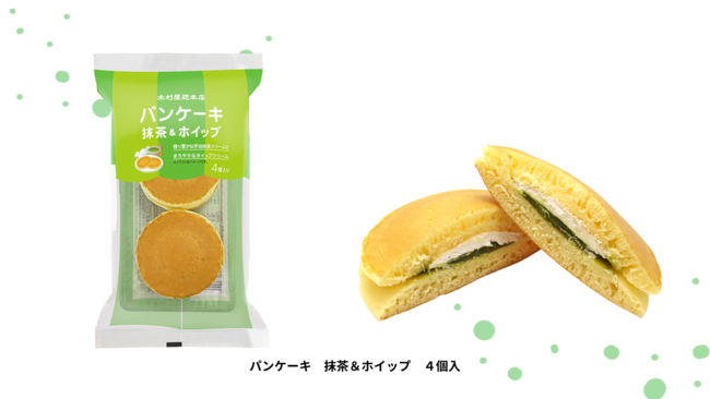 しっとり、もっちりとしたパンケーキ生地で、風味豊かな宇治抹茶クリームとミルク風味の口溶けのよいホイップタイプのクリームをサンドしました。
