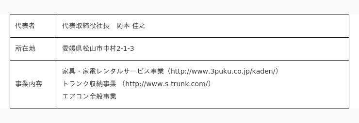 三福快適生活は愛媛県松山市を中心とした地域に根ざし、「家具・家電レンタルサービス」「トランク収納サービス」「エアコン事業」などを手掛ける生活密着型企業です。