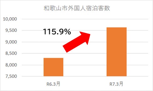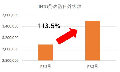 また、外国人宿泊客数は、コロナ前には及びませんが、令和7年3月単月では、日本政府観光局(JNTO)が発表した訪日外客数(2025年3月推計値)の前年度伸び率を上回りました。