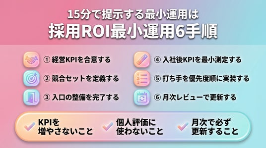 15分で提示する最小運用は「採用ROI最小運用6手順」です