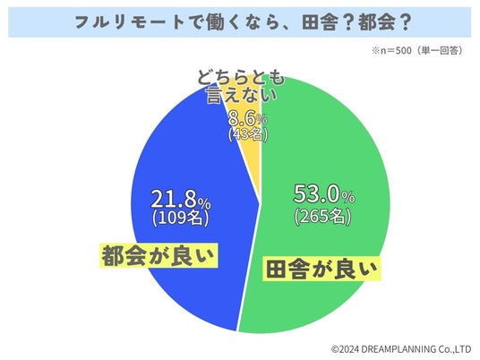 フルリモートで働くなら、田舎?都会? n=500(単一回答)