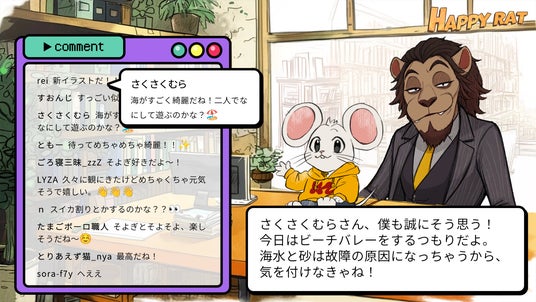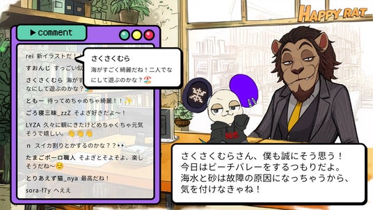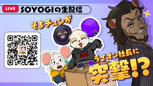 今回の配信では、SOYOGIのほかに、同アプリ内のAIキャラクターであるライオンの社長や白ねずみのチュン太も登場予定。AIキャラたちによるにぎやかな掛け合いにご期待ください。