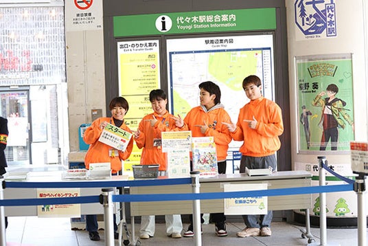 代々木駅の「駅からハイキング」は、毎年東京スクール・オブ・ビジネスのスポーツビジネス学科1年生が主としてコース企画を任され、地域の魅力を盛り込んだコースポイントの設定や期間中、JR東日本の社員と共同で運営を行っています。