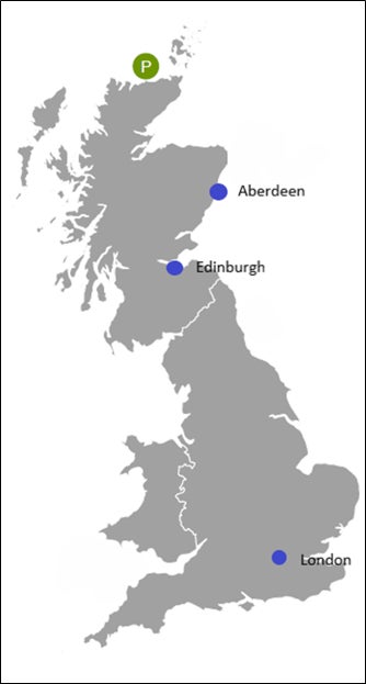 本プロジェクトは、ハイランド州ケイスネス郡のドーンレイ沖7.5kmに位置する浮体式洋上風力発電事業で、今後、事業化に向け具体的に検討を進め、2030年の運転開始を目指します。完成後の設備容量は最大100,000kWを予定しており、ハイランド州の約65%にあたる約70,000世帯の消費電力に相当する電力を供給します。