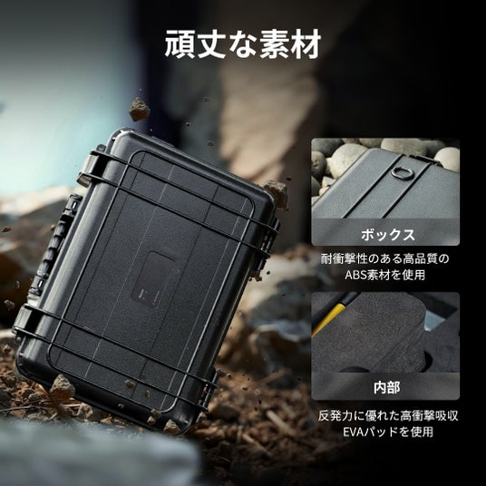 ボックスは耐衝撃性のある高品質のABS素材を使用し、内部は反発力に優れた高衝撃吸収EVAパッドを使用し、防水、防塵、落下防止、耐衝撃性を備えています。ボックス内外の気圧のバランスを取るためのガスバランスバルブも備えており、高地や気温によるボックスの開閉不能を回避します。