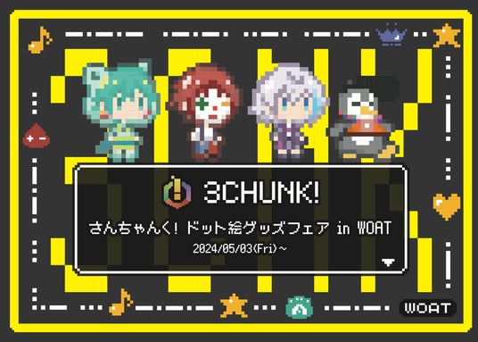 クリエイターの商品企画から、製作・販売まで行う株式会社メディアリンクは、3人組凸凹実況グループの『さんちゃんく!』とクリエイターグッズを常設販売する『WOAT』のコラボイベントを5月3日~12日までの期間限定で、池袋 P'PARCO『WOAT』にて開催いたします。
