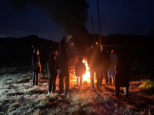 2025年1月5日、NPO法人唐津Farm&Foodは横枕地区で開催された伝統行事「鬼火焚き」に参加しました。この行事は江戸時代から続く貴重な文化遺産であり、地域住民が毎年1月に約300~500kgの薪を森林ゾーンから切り出して行っています(2021年を除く)。