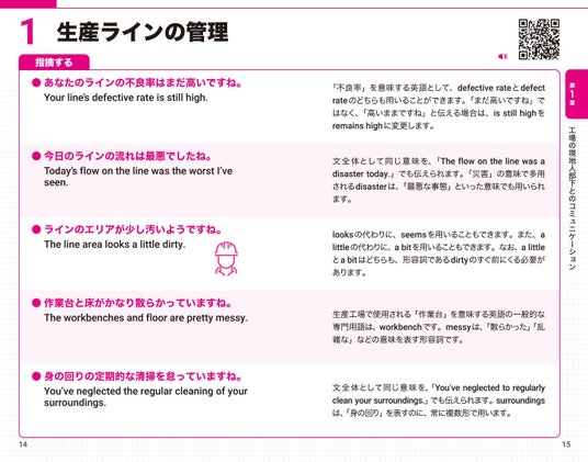 実用書や児童書、教養書を発行する出版社、株式会社ナツメ社(東京都千代田区、代表取締役:田村正隆)は『すぐに使える! 製造現場で役立つ英語フレーズ集』(https://amzn.asia/d/bLV5GE9)を8月19日に発売します。海外の製造現場で、すぐに、そのまま使えるフレーズを厳選した英語フレーズ集です。