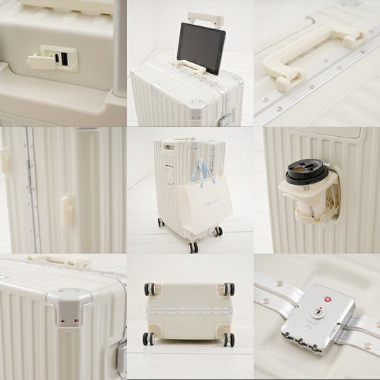 またスマホスタンドやカップホルダー、荷物をかけられるフック、USB充電ポート等、移動先や旅行中に使える実用的な機能を多数実装しております。