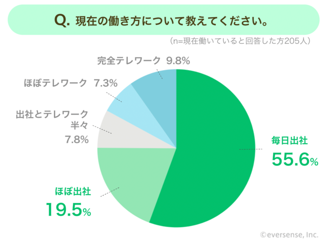 働いている人のうち55.6%が「毎日出社」。うち8割は「仕事柄出社する必要がある」と回答。
