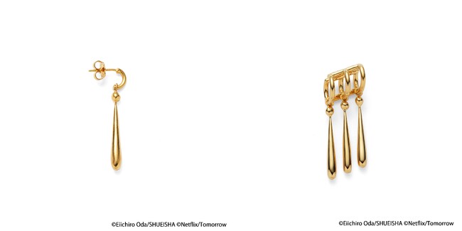 プロデューサーの新田氏が演じたキャラクターでもあるロロノア・ゾロが身に着けていた3連ピアスを実際に型取り再現したピアスとイヤーカフとなります。ピアスホールの無い方も再現性高く身に着けることのできるアイテムです。