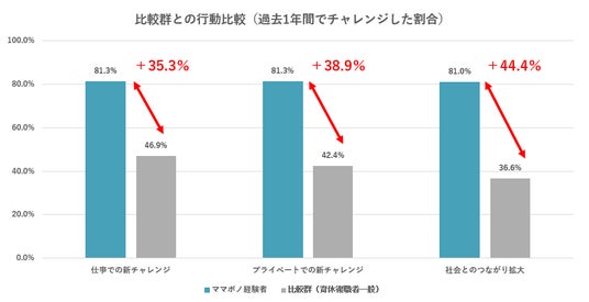 - 仕事での新チャレンジ(実績):ママボノ81.3% vs 比較群46.0%(+35.3%)