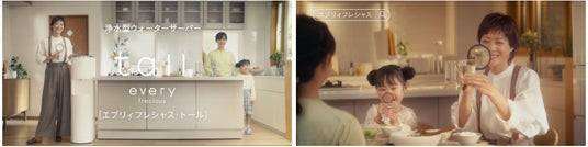今回の新CMでは、上野樹里さんは長女役として登場。妹家族の家に遊びに行った日常のひとコマを切り取りました。本CMはウォーターサーバー「エブリィフレシャス」の見た目はそのまま、パワーアップした浄水性能にフォーカスを当てた内容になっています。水のおいしさがアップした秘密を、上野さんと姪っ子役の日下莉帆ちゃんと2人で虫眼鏡を使い、探偵さながら調べていきます。そんな2人の可愛いやり取りをお見逃しなく!