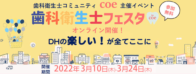 歯科医療領域でプラットフォームビジネスを展開する株式会社メディカルネット(代表取締役会長CEO:平川 大 以下、「当社」)は、歯科医療従事者のための総合情報サイト『Dentwave.com』(https://www.dentwave.com/)が運営する歯科衛生士のためのコミュニティ『歯科衛生士のcoe』にて、2022年3月10日~2022年3月24日に『歯科衛生士フェスタ in coe』を開催いたします。