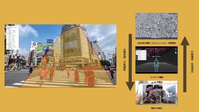 「フィジカル空間のAR屋外広告」を前提とし、3D都市モデル・環境情報等の景観ルールと連携して、デジタルツイン上でAR屋外広告の管理システムを実証します。
