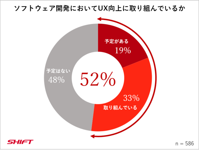 ソフトウェア開発におけるUX向上の取り組みの状況:52%が開発においてUX向上に「取り組んでいる」「予定がある」と回答