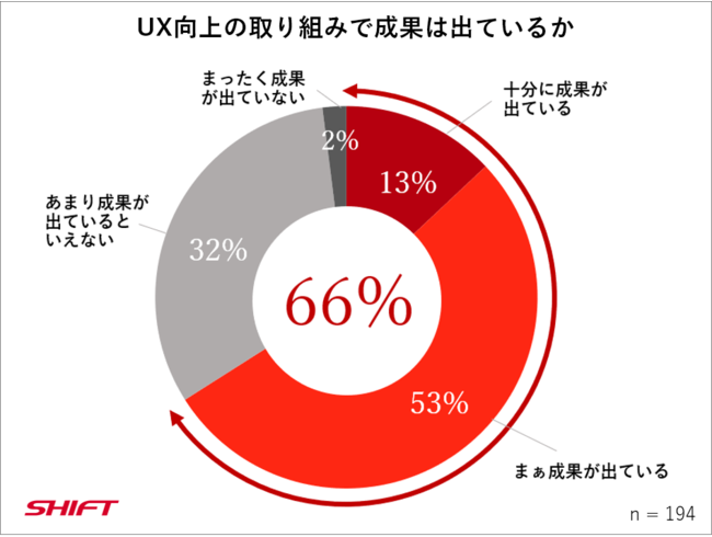 UX向上の取り組みで成果は出ているか:66%が「成果が出ている」と回答