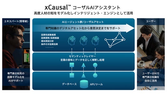 株式会社ヴェルト(本社:東京都、代表取締役 CEO 野々上 仁、以下ヴェルト)は、自社コーザルAIプラットフォーム「xCausal(TM)(クロス・コーザル)」において、先般発表した、高度人材の知を継承・進化させるAI「コーザルAIアシスタント」機能を順次提供開始したことをお知らせします。 コーザルAIアシスタントのユニークな特長は、単発的に因果関係を探索・推論するための分析ツールではなく、組織内に蓄積される専門知識や判断プロセスを因果モデルとして継続的に運用・更新し、業務や意思決定を支える組織内のインテリジェント・エンジンとして機能する点です。コーザルAI(因果AI/因果推論AIとも呼ばれる)、生成AI、AIエージェントそれぞれの長所を組み合わせることで、組織内に存在する高度な専門知識や暗黙知、判断ロジックを、再現性と説明可能性を備えた形で誰もが活用できるようにする斬新なリューションです。因果モデルは分析結果として完結するのではなく、データの更新や人の判断を取り込みながら進化し続け、組織知として価値を高めていきます。今回、導入支援やカスタム実装に加え、AIエージェントが組織固有の文脈のもとでデータの意味を正しく解釈できるようにするセマンティックレイヤーの実装を、プロフェッショナルサービスとして新たに提供開始しました。これにより、コーザルAIアシスタントは、業務やシステムと連動しながら信頼度の高い意思決定を支えることが可能になります。
