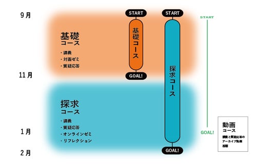 今年度は、基礎コース・探求コース・動画コースの3コースを開催します(基礎コース・探求コースに参加希望の方は応募に際し、説明会参加が必須です)。