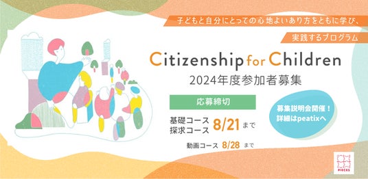 ※Citizenship for Children2024プログラムの基礎コース・探求コースへ参加を希望される方は、本説明会へ必ずご参加ください。ただし、いずれの日程も難しい方は、cforc@pieces.tokyo まで、どうぞご相談ください。(動画コースへの参加ご希望の方は任意です)