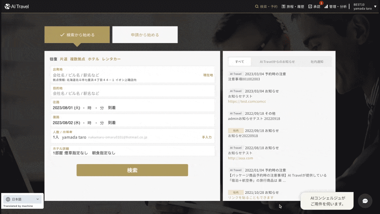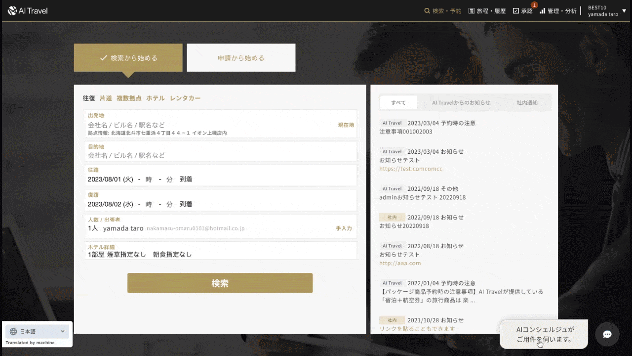 ・出張管理クラウドサービス「AI Travel」:https://aitravel.cloud/