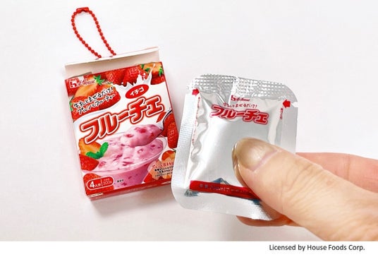 ハウス食品「フルーチェ」のパッケージがそのまま小さく、ミニマスコットになりました。