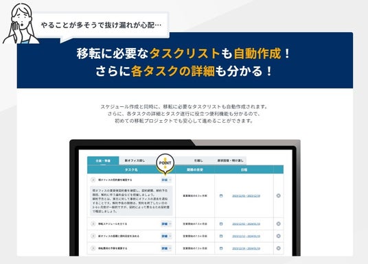 ▶移転準備・オフィス探し・内装・引越しまで、必要なタスクを自動生成