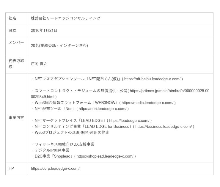 株式会社リードエッジコンサルティング ( 以下同社( https://corp.leadedge-c.com ) 、代表取締役:庄司 貴之/本社:東京都新宿区)が運営する国内最大級の初心者向けNFTメディア「WEB3NOW」は、NFTのオンチェーンデータをピックアップするデータフェッチ機能を実装したことをお知らせいたします。