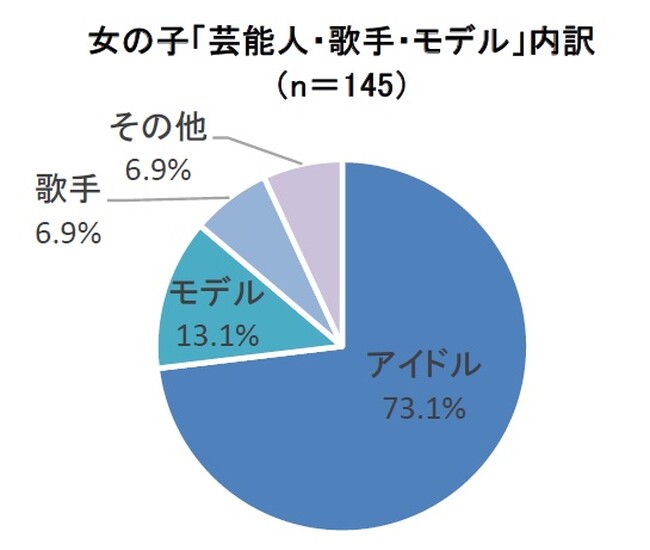 内訳を見ると、モデルや歌手を押さえ、アイドルが7割を占めました。歌って踊るアイドルの華やかさに、あこがれを抱いているようです。