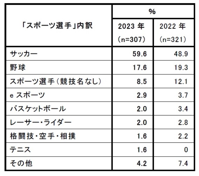 12位「スポーツ選手」、サッカー人気で2年連続順位アップ