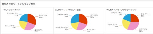 「統計機能」は、ミツカリに蓄積されたデータを業界や部署、役職などのカテゴリ別に分析できる機能です。自社特徴と業界平均のソーシャルタイプや人材タイプの分布を比較することで、組織特性を可視化できます。