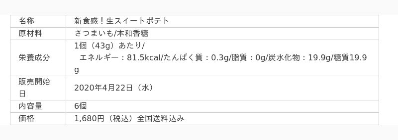 「新食感!生スイートポテト」は、原材料は2つだけ。とろっとした口あたりをどうぞ。