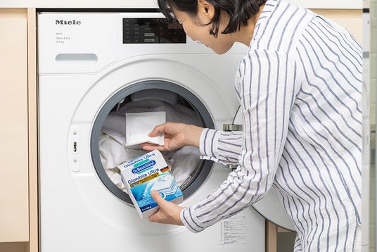 白い衣類だけ集めて、洗剤を入れてグローホワイト ウルトラを1包み入れて洗濯してください。それだけで、くすんだり黄ばんだりした白い衣類の白さを復活させます。