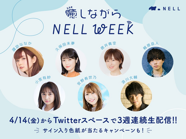 そんなNELLが、皆様が寝る前にほんの一息の「癒し」を提供したいという想いから「癒しながらNELL WEEK」という企画を実現。4月という時期は新生活や新たな環境の変化などで、ストレスや負荷も多くかかる時期です。そんな時期に、より質の良い睡眠で快適な明日を迎えて欲しいという想いを込め、週替わりでゲスト声優を招き生配信する”癒し”音声トーク番組を実施いたしました。