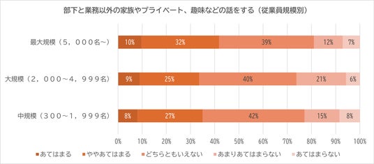 【設問3】部下と業務以外の家族やプライベート、趣味などの話をする 【従業員規模別】