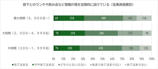 【設問6】部下とのランチや飲み会など懇親の場を定期的に設けている 【従業員規模別】