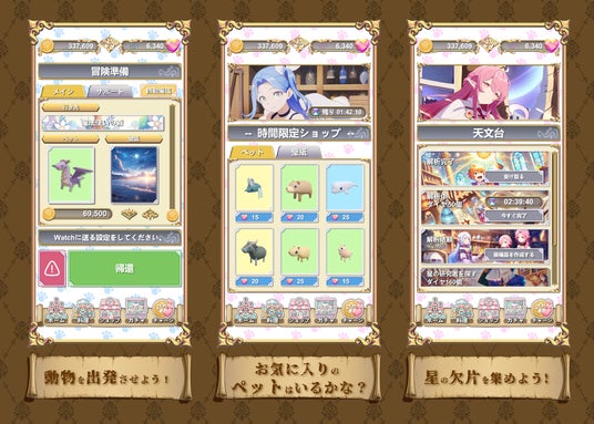 ・天文台機能:冒険で装備品を手に入れられる新しい探索要素。