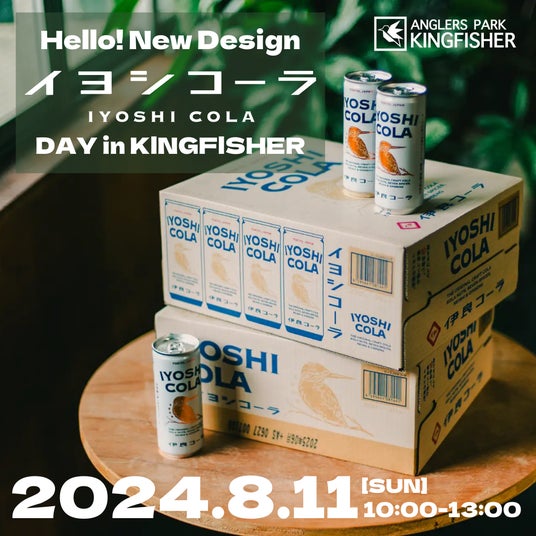 2024年8月11日(日)、栃木県大田原市の管理釣り場「キングフィッシャー」(https://kingfisher-tochigi.com/ )にて、イヨシコーラ新デザイン缶の発売を記念したイベント「IYOSHI COLA Day in KINGFISHER」を開催いたします。会場では、イヨシコーラをイメージしたオリジナルスプーン(ルアー)も販売いたします。