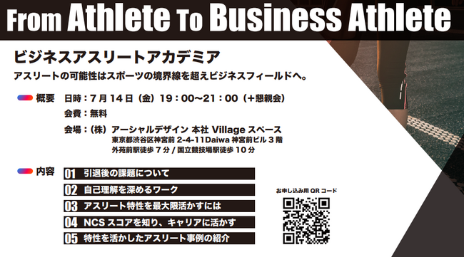 株式会社アーシャルデザイン(本社:東京都渋谷区、代表取締役社長:小園翔太)は、7月14日に日本テレビ放送網株式会社の運営するスポーツの個人指導サービス『ドリームコーチング』とアスリートに向けたビジネスアスリートセミナーを共同開催いたします。現役時代から「セカンドキャリアを見据えてやるべきこと」 を伝授いたします。