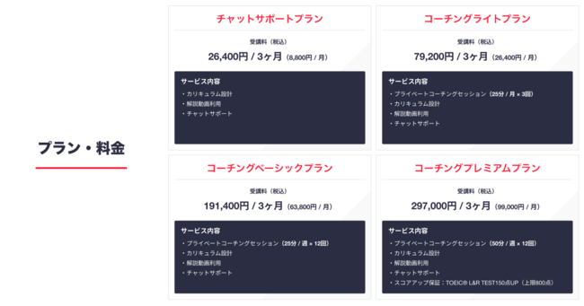 4. コーチングプレミアムプラン 297,000円/3ヶ月(99,000円/月)※スコアアップ保証付き