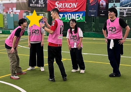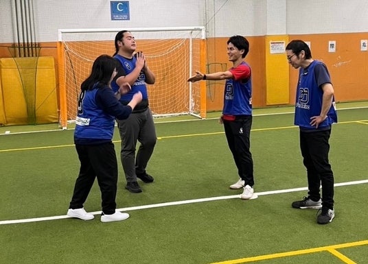 何もない所からコミュニケーションを取りましょう!楽しみを見つけましょう!と言っても、障がいのない人であっても難しいものです。それが、パス交換をしたり作戦を立てたり、一緒にゴールを喜びあったりする事で自然に距離が縮まっていきます。今後は、運動経験がない方もより安心して参加してもらえる様なルールやコミュニケーションが活発になる様な仕掛けを模索していきたいです!(バルドラール浦安デフィオ/泉)