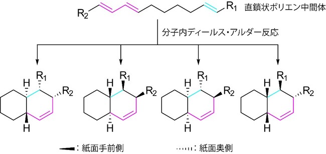 補足図1 分子内ディールス・アルダー反応により形成する4種類のデカリンの立体配置