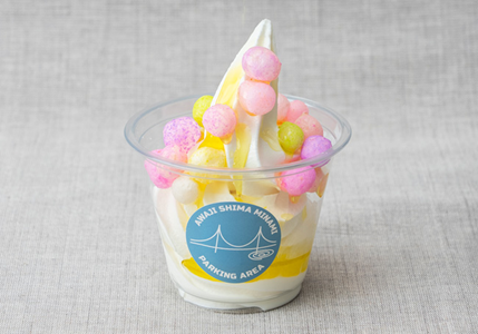 淡路島南PAフードコート上り線小豆島オリーブオイルとおいりソフト(560円 税込)