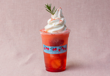淡路島産の冷凍いちごが入った淡路島匠牛乳ソフトのフロート。冷凍いちごが徐々に溶け、シャーベット状から変化する舌触りを楽しめます。サイダーか匠牛乳をチョイスできます。