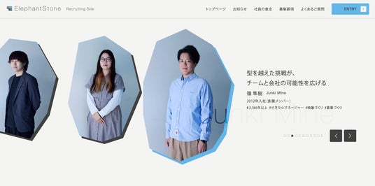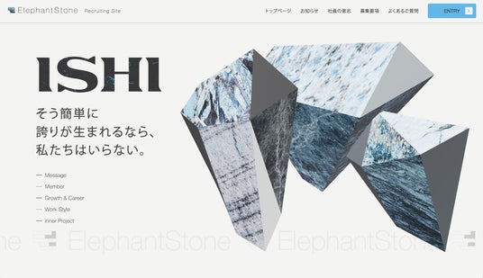 エレファントストーンは、その社名から、社内外で「エレファント」という愛称で親しまれることの多い会社です。しかし今回の採用サイトでは、あえて「ストーン(石)」にフォーカスを当てました。