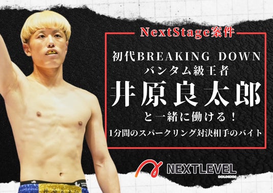 HRマッチング等プラットフォームを運営するネクストレベルホールディングス株式会社(本社:東京、大阪、代表取締役:河原由次)は、初代BREAKING DOWNバンタム級王者(2024年)の井原良太郎氏とタイアップし激レア"NextStage案件”を開催。その様子がYouTubeにて公開されました。